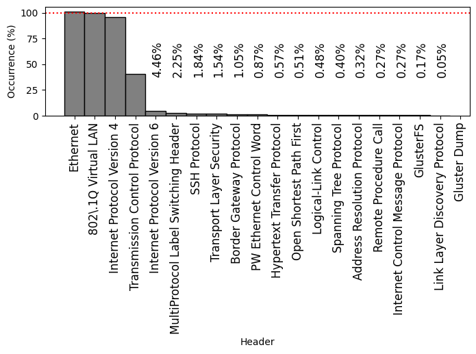 Variety of application/protocol headers across FABRIC site ports: (anonymised)