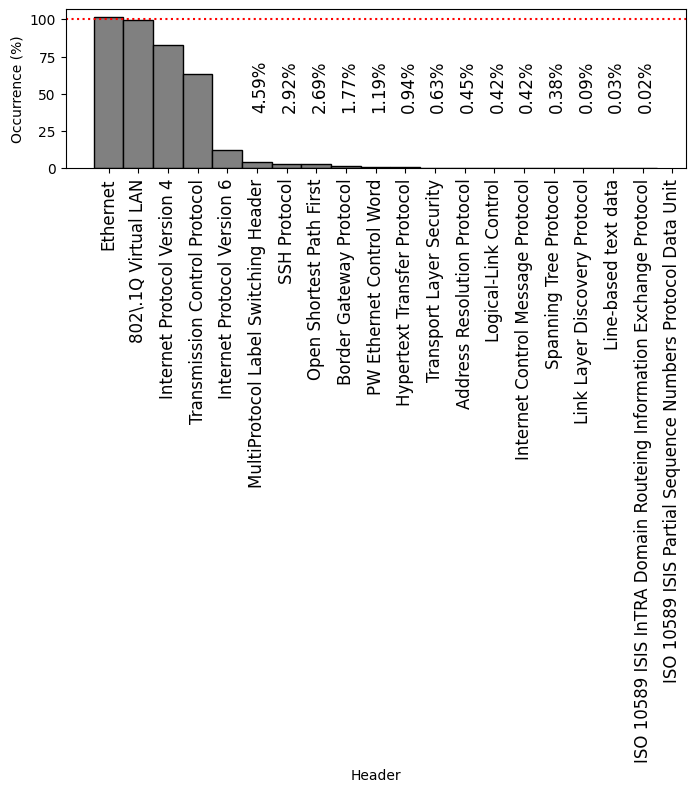 Variety of application/protocol headers across FABRIC site ports: (anonymised)