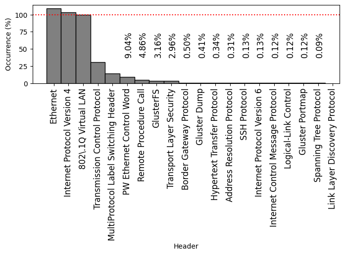 Variety of application/protocol headers across FABRIC site ports: (anonymised)