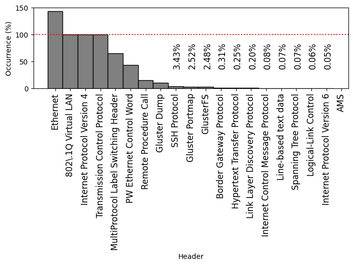 Variety of application/protocol headers across FABRIC site ports: (anonymised)