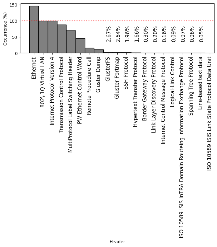Variety of application/protocol headers across FABRIC site ports: (anonymised)