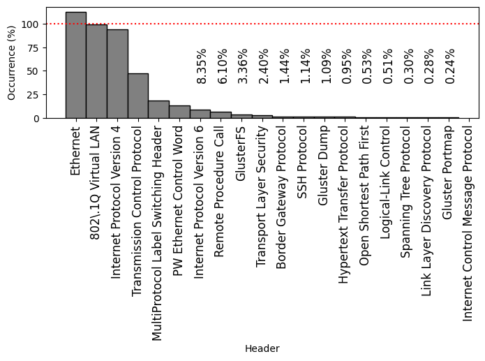 Frequently-occurring protocol headers on FABRIC: