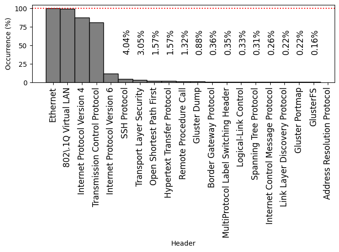 Frequently-occurring protocol headers on FABRIC: