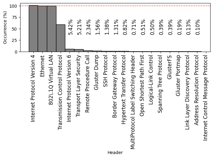 Variety of application/protocol headers across FABRIC site ports: (anonymised)