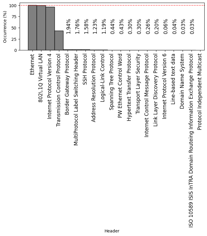Frequently-occurring protocol headers on FABRIC: