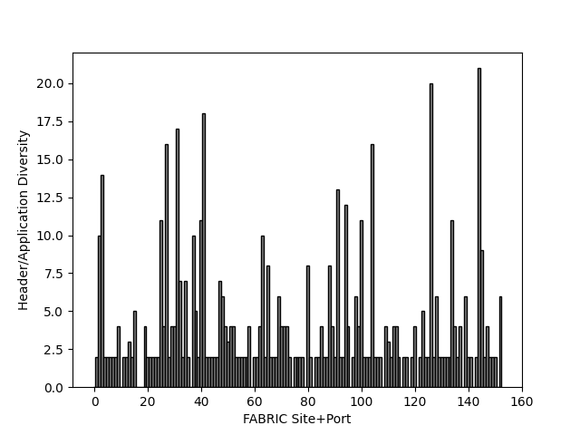 Variety of application/protocol headers across FABRIC site ports: (anonymised)