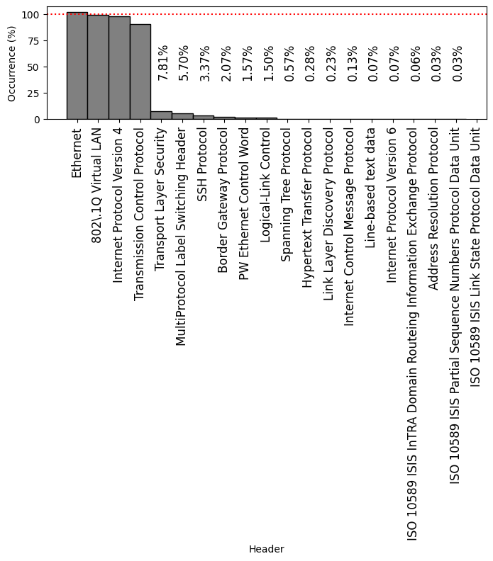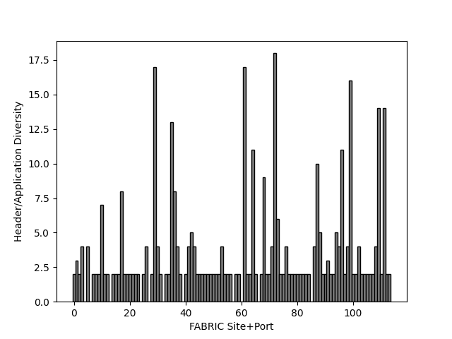 Variety of application/protocol headers across FABRIC site ports: (anonymised)