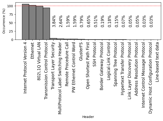 Frequently-occurring protocol headers on FABRIC: