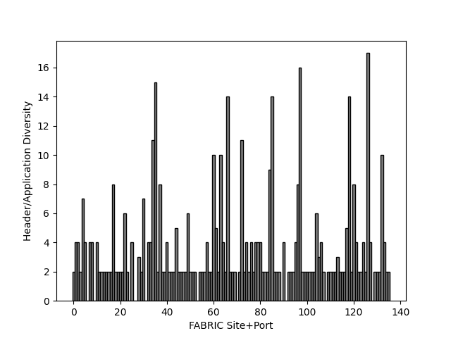 Variety of application/protocol headers across FABRIC site ports: (anonymised)