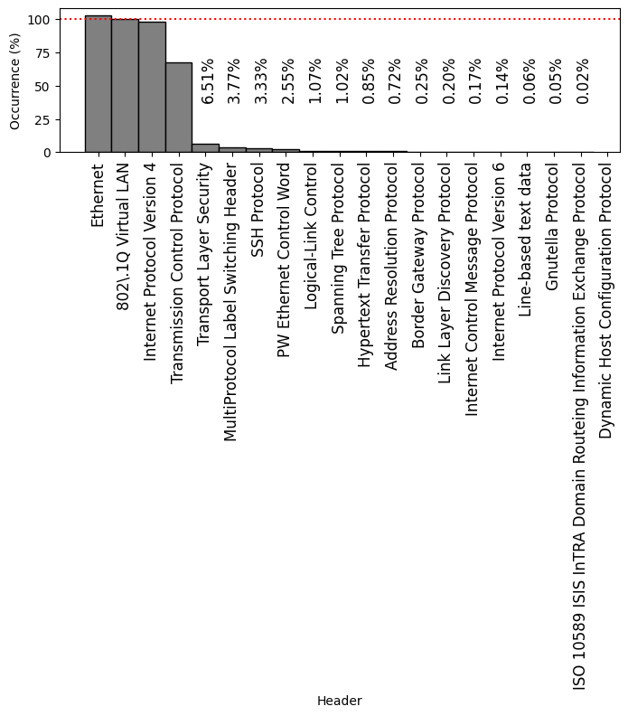 Frequently-occurring protocol headers on FABRIC: