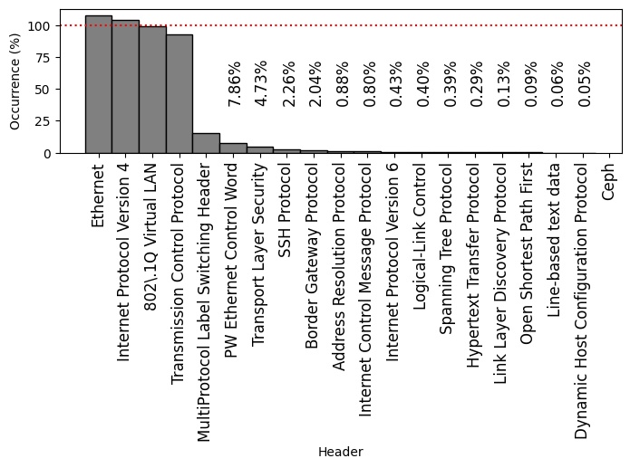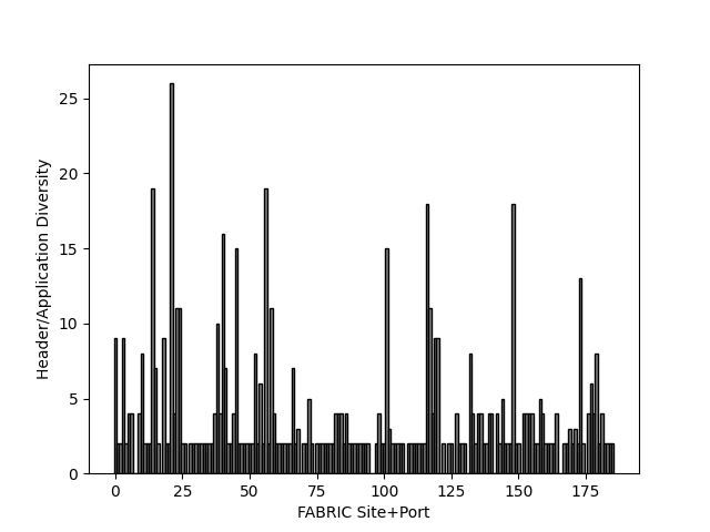Variety of application/protocol headers across FABRIC site ports: (anonymised)