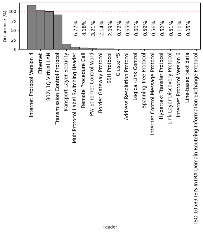 Frequently-occurring protocol headers on FABRIC: