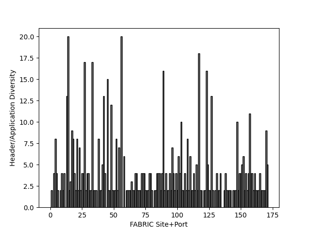 Variety of application/protocol headers across FABRIC site ports: (anonymised)