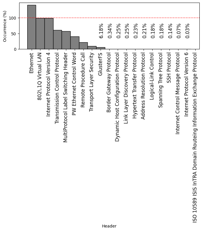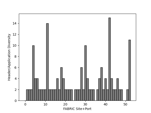 Variety of application/protocol headers across FABRIC site ports: (anonymised)