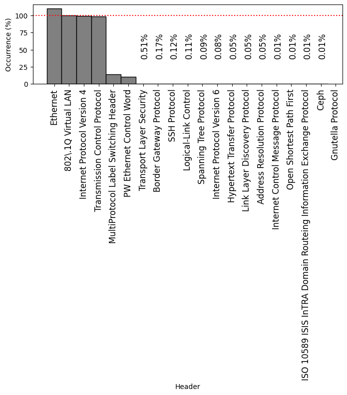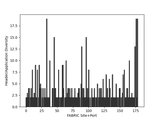 Variety of application/protocol headers across FABRIC site ports: (anonymised)