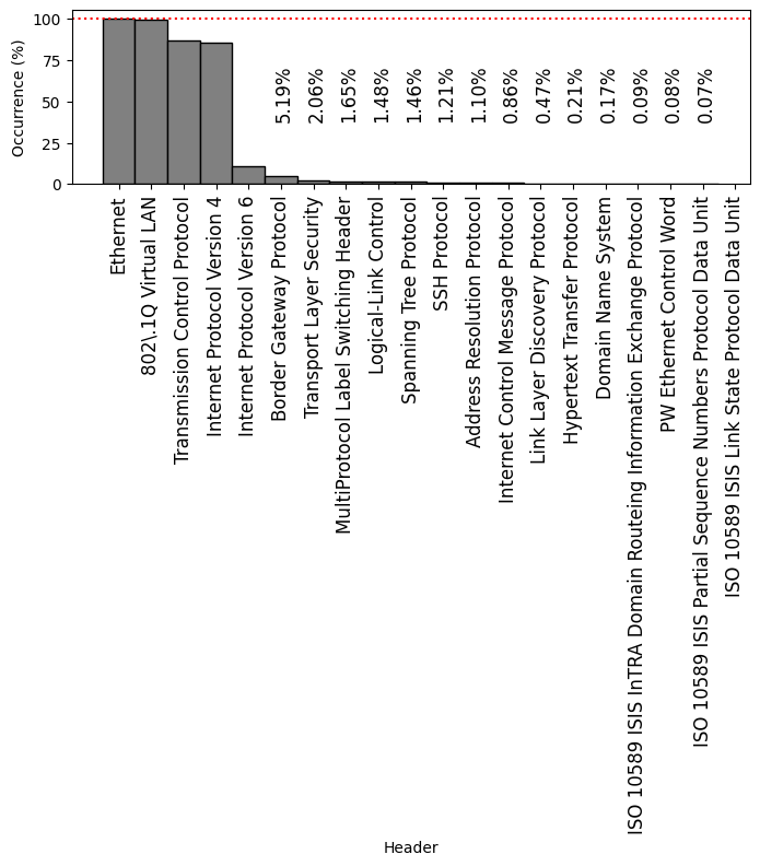 Variety of application/protocol headers across FABRIC site ports: (anonymised)