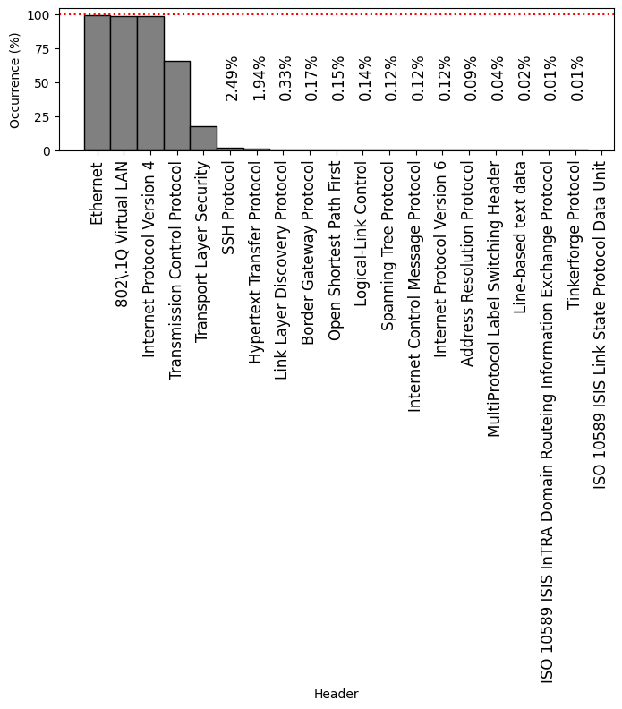 Frequently-occurring protocol headers on FABRIC: